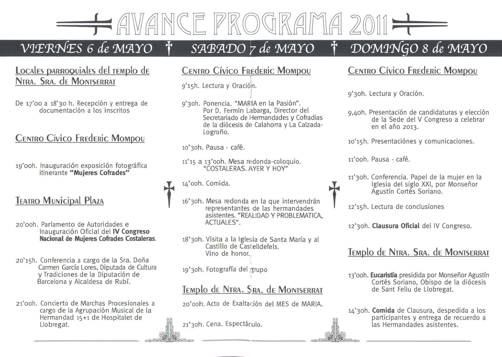 LA AGRUPACION MUSICAL PARTICIPARA EN EL IV CONGRESO NACIONAL DE MUJERES COSTALERAS DONDE OFRECERA UN CONCIERTO DE MARCHAS PROCESIONALES PARA FINALIZAR EL ACTO DEL DIA 6 DE MAYO, SERA EN EL TEATRO MUNICIPAL PLAZA DE CASTELLDEFELS A LAS 21:00H